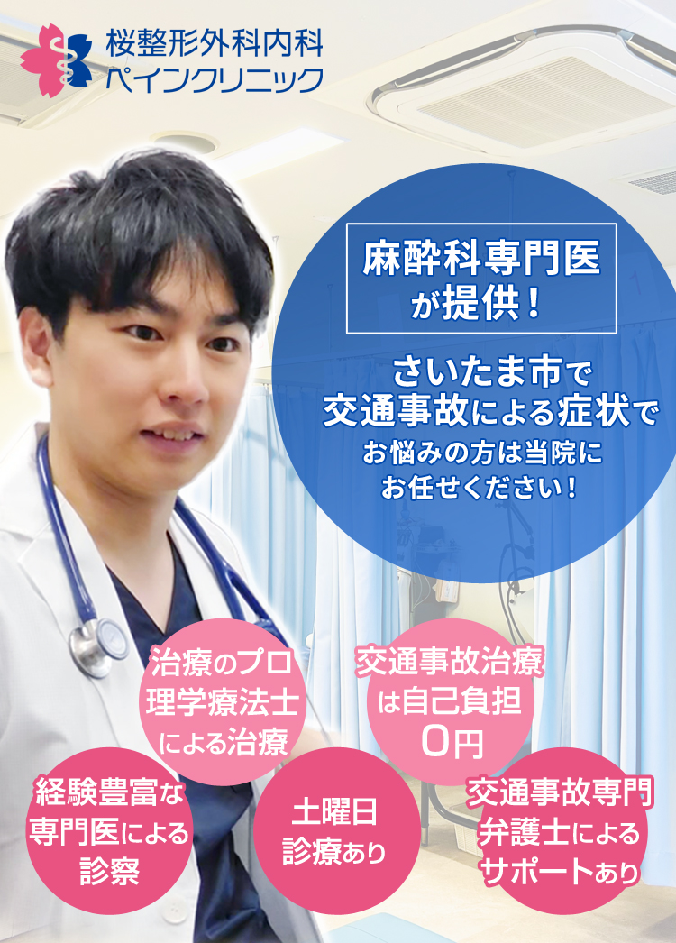 交通事故に遭ったら、加害者の連絡先と保険会社の連絡先をお伺いください。保険会社には桜整形外科内科ペインクリニックで治療・通院する旨をお伝えください。